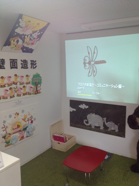 壁にはプロが制作した童画、壁面造型、イラスト等
