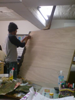 今日は制作初日!が、自転車パンクのため少し遅れるとの連絡が入る…。。。