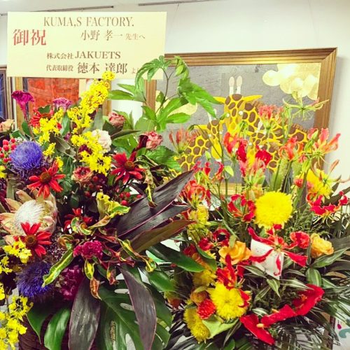 弊社代表である小野孝一の画業45年を記念してお祝いのお花を