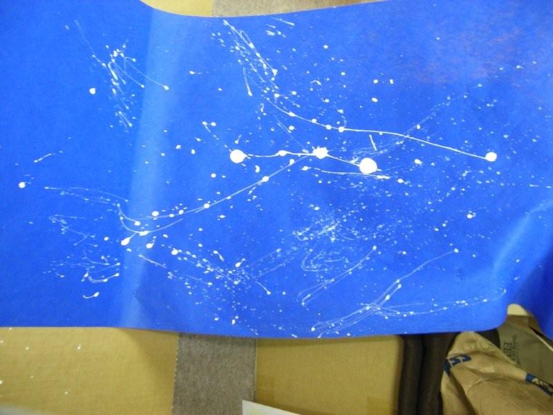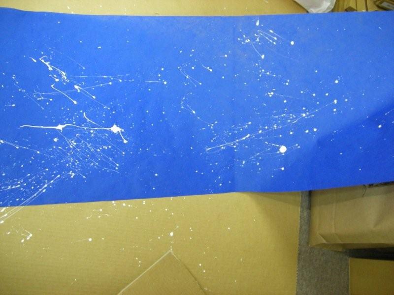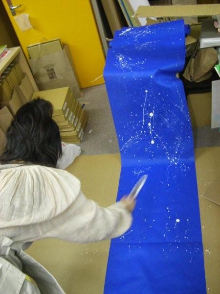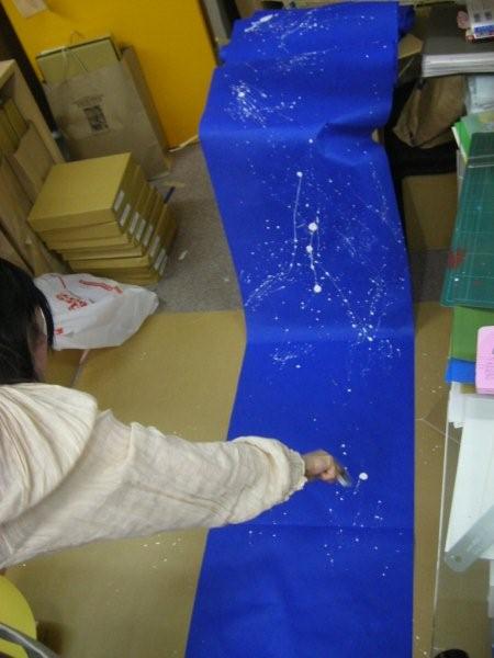 ブルーの生地に絵具を飛ばし夜空の星☆に…