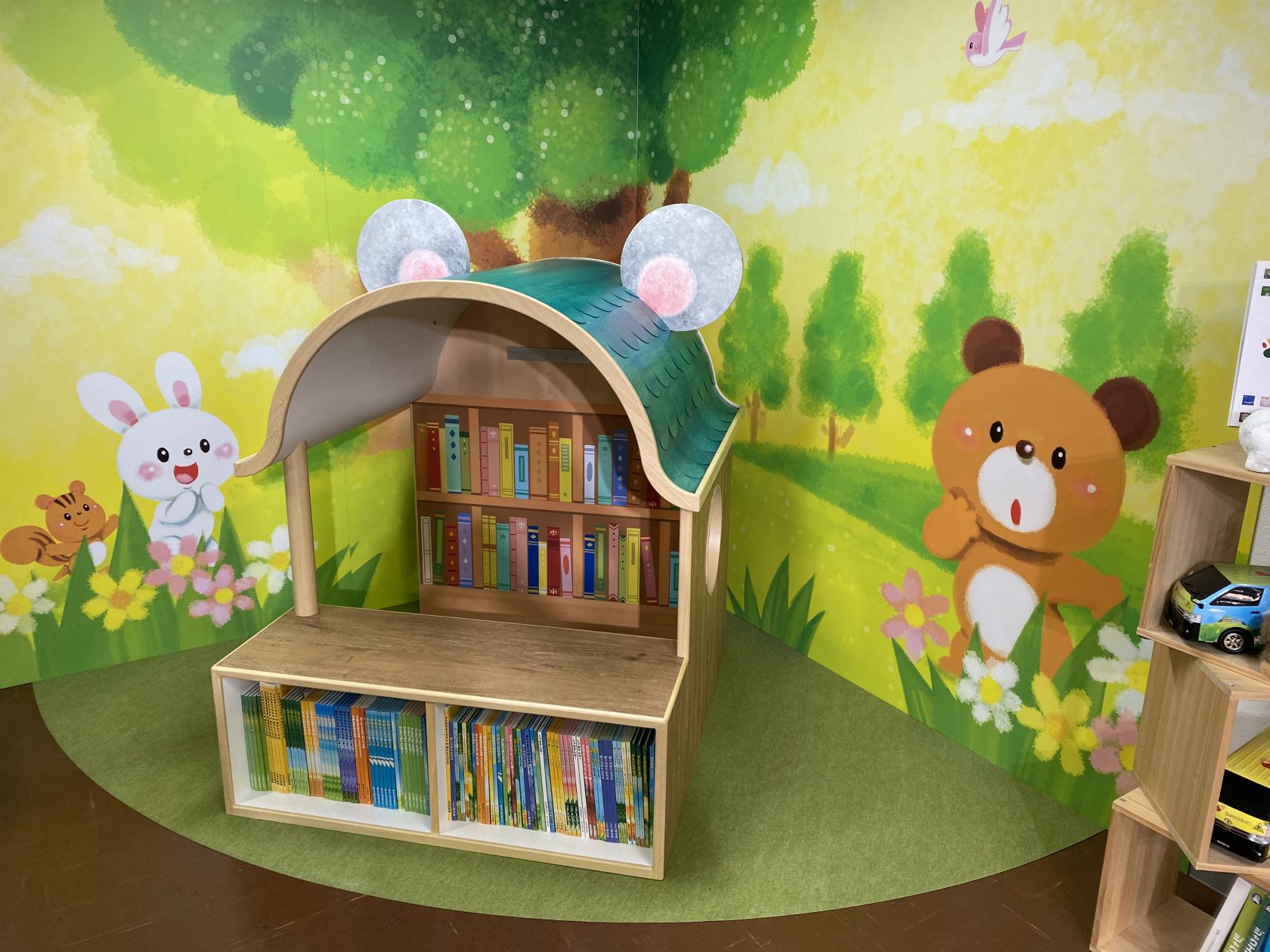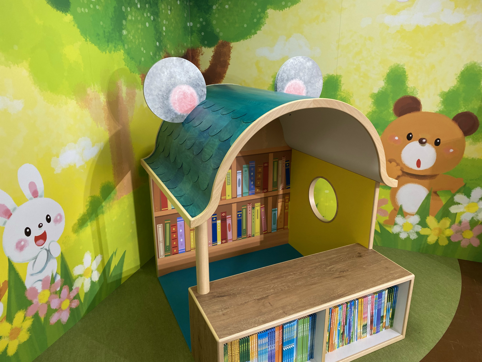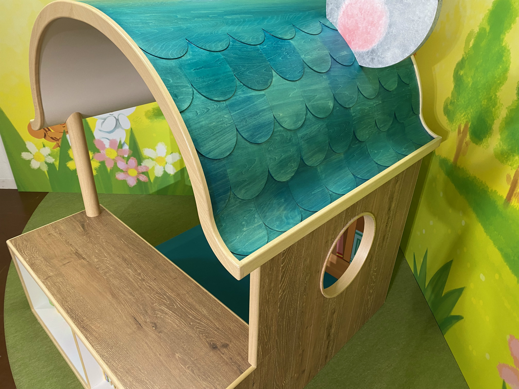 絵本の中に登場するような可愛らしいお家型のフォルムは、コンパクトながら抜群のインパクトで、こどもから大人まで惹き付ける空間を創出することができます。