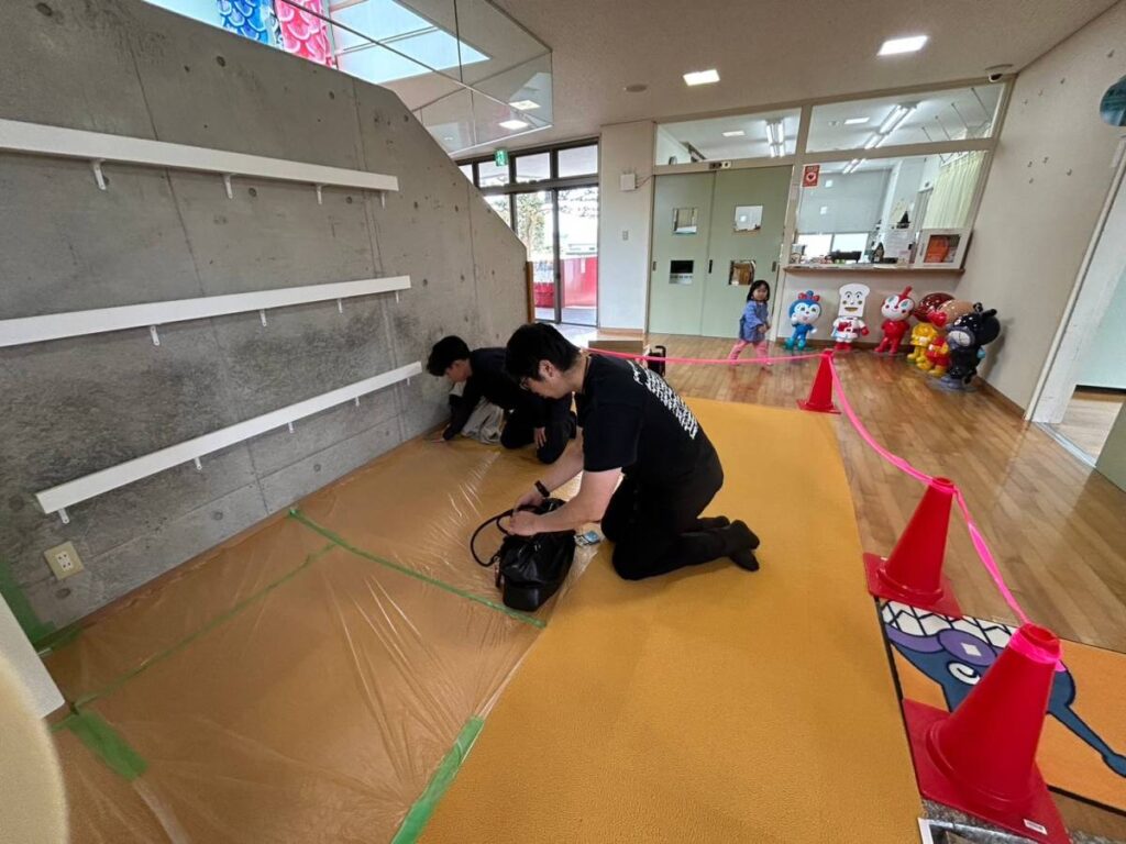 - インクジェットクロスも高品質なデザインを提供できますが、KUMA’S FACTORYではアーティストによるライブアートを取り入れることで、プラスワンの価値を提供しています。実際に描かれていく過程を見せることで、子どもたちにとって特別な空間を創り上げます。