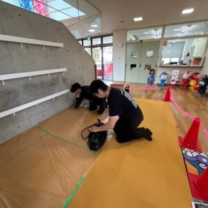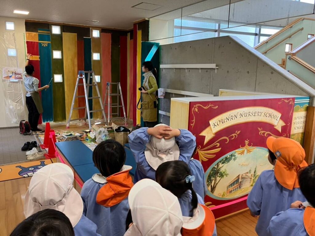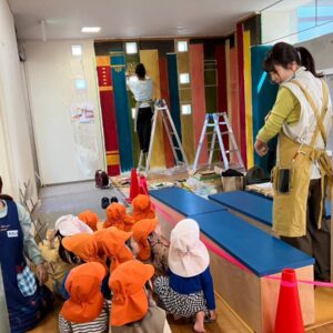 - アーティストが実際に壁画を描く様子を園児たちに見せることで、空間がどのように変わっていくのかをリアルタイムで体感してもらいました。このプロセスは、園児たちの好奇心を刺激し、創造力を育む貴重な体験となりました。