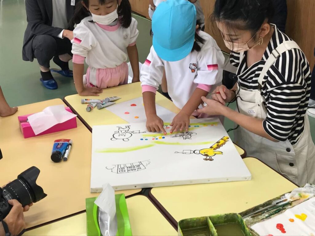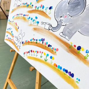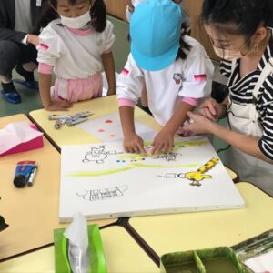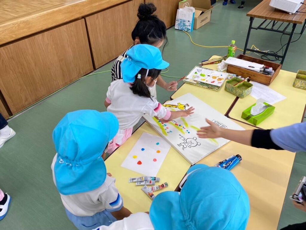株式会社KUMA’S FACTORYでは、幼稚園でのアートワークショップとしてフィンガーペイントプログラムを提供しています。このプログラムは、幼児の指を小さなお花に見立てて作品を作り上げるもので、卒園制作やアートイベントに最適です。園児一人ひとりの指跡を活かしたこのアートは、園で過ごした証としても非常に良い思い出になります。