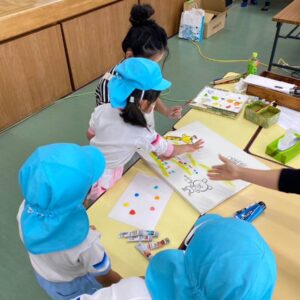 フィンガーペイントを通じて、園児の創造力や想像力が豊かに育まれます。 - 協調性の向上