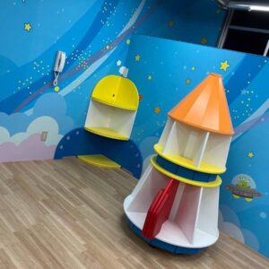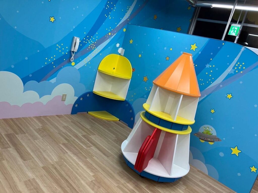 - ロケット型の遊具やカラフルな収納家具など、子どもたちの興味を引き、遊びながら学べる環境を整備しました。
