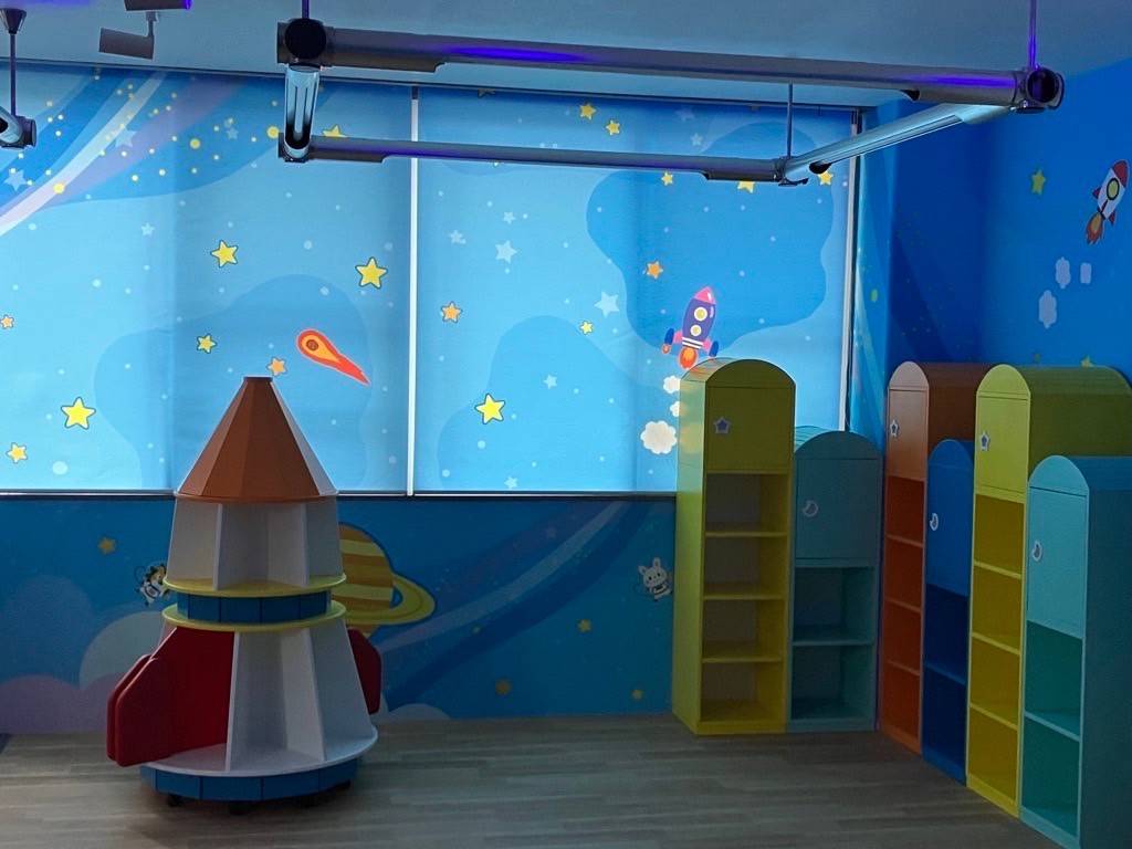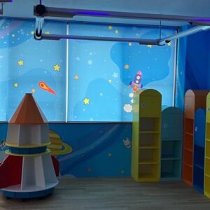 - 統一感のあるデザインが子どもたちに安心感を与え、楽しく学べる環境を提供します。また、ブラックライトを使用した星空演出は、子どもたちにとって特別な時間となります。