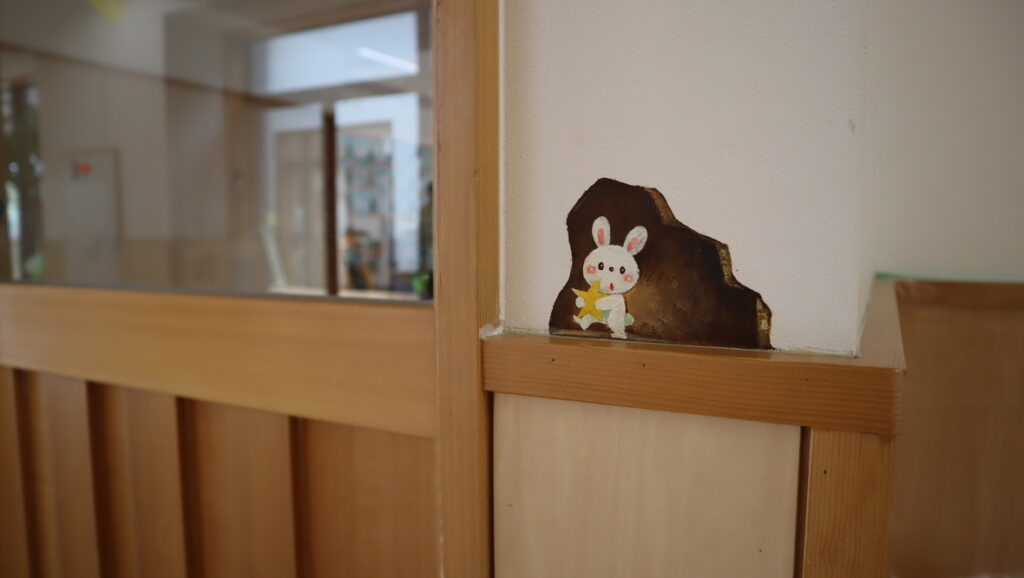 株式会社KUMA’S FACTORYの「サプライズアート」プロジェクトは、保育園の壁面の隅や階段の蹴上げ部分、腰壁の下部などに小さな穴や壁紙のめくれをワンポイントの遊び心として描き上げるアートです。このアートの目的は、子どもたちに新たな視点や発見を提供することです。